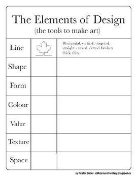 Ideal art activities and lessons for elementary art, middle, or high school art. The elements of art are the visual components of color line, shape, texture, color, value and space. Get 7 elements of art handouts and 10 principles of design handouts. It begins by introducing the basic building blocks: