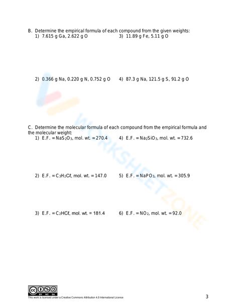 Empirical And Molecular Formula Worksheet