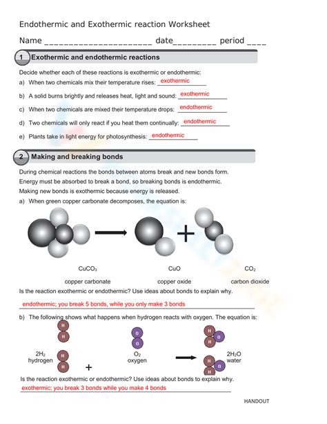 Endothermic Exothermic Reactions Worksheet Printable Calendars AT A