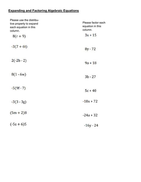 Evaluating Algebraic Expressions Worksheet