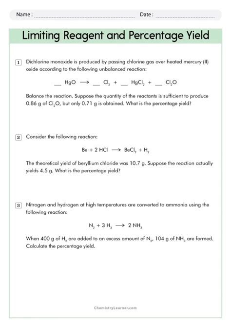Extra Practice Limiting Reactant And Percent Yield Worksheet