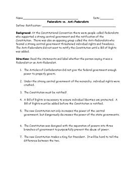 Federalist And Anti Federalist Worksheet