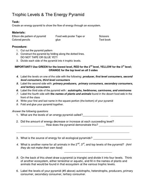 Food Chains Food Webs And Energy Pyramid Worksheet