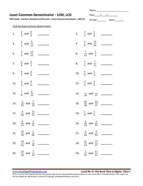 Least Common Denominator Worksheet With Answer Key WERT SHEET