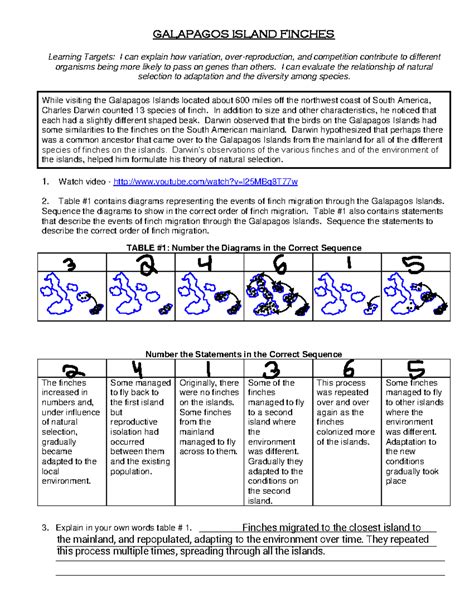 Galapagos Finch Kiser Sheet GALAPAGOS ISLAND FINCHES Learning