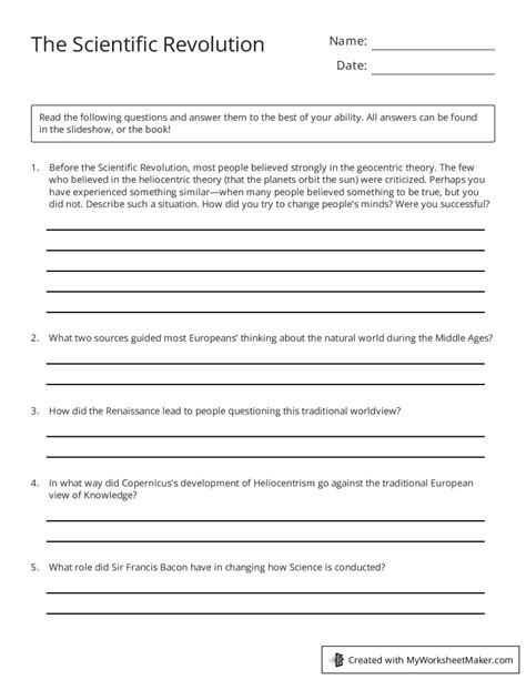 Global History The Scientific Revolution Worksheet Answers