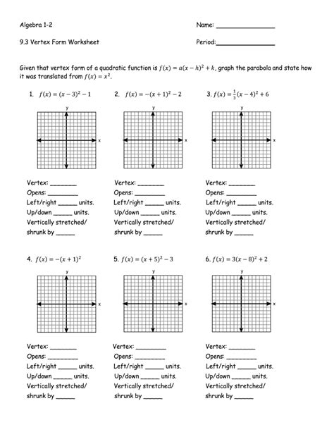 Divide (by folding) the piece of graph paper into four parts. Algebra 1 10.1 worksheet graphing quadratics show all work, when necessary, in the space provided. On the graph, answer each of the following questions. Write an equation of each graph below in the form f(x)=a(x!h)2+k.