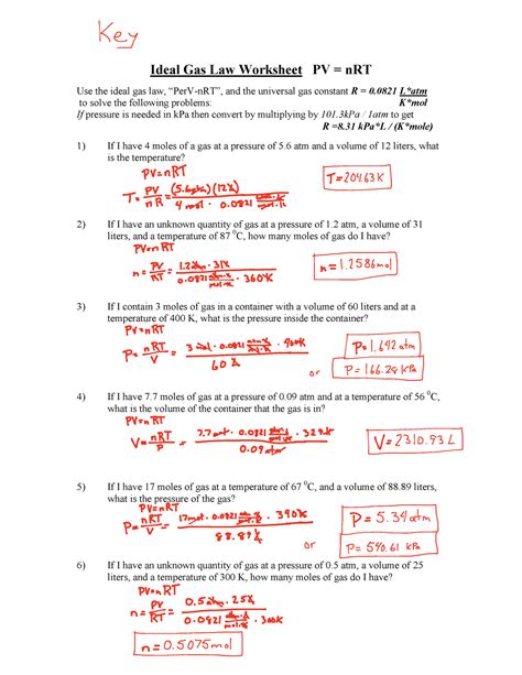 Ideal Gas Law Worksheet With Answers - (b) use the ideal gas law to work out the value of the universal gas constant, r, and its units when volume and pressure are given in s.i. On this worksheet you will practice with the ideal gas law, the combined gas law, as well as the relationships between the number of moles, the mass, and the. What is the value of and units on r? The ideal gas law relates the pressure, temperature, volume, and mass of a gas through the gas constant “r”. A 952 cm3 container of gas is exerting a pressure of 108 kpa while at a. 1) if four moles of a gas at a pressure of 5.4. Assume that the lungs are at 1.00 atm pressure and at.