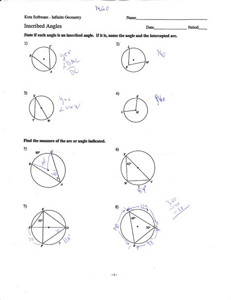 Inscribed Angles Worksheet Answers