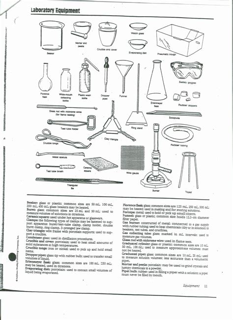 These free worksheets help students learn proper lab safety techniques, laboratory equipment, and their proper usage. Study with quizlet and memorize flashcards containing terms like beaker tongs, analytical balance, beral pipette and more. Study with quizlet and memorize flashcards containing terms like bunsen burner, pipestem triangle, evaporating dish and more. Up to 24% cash back what are the names and functions of the pieces of laboratory equipment/apparatus found in a typical chemistry laboratory?
