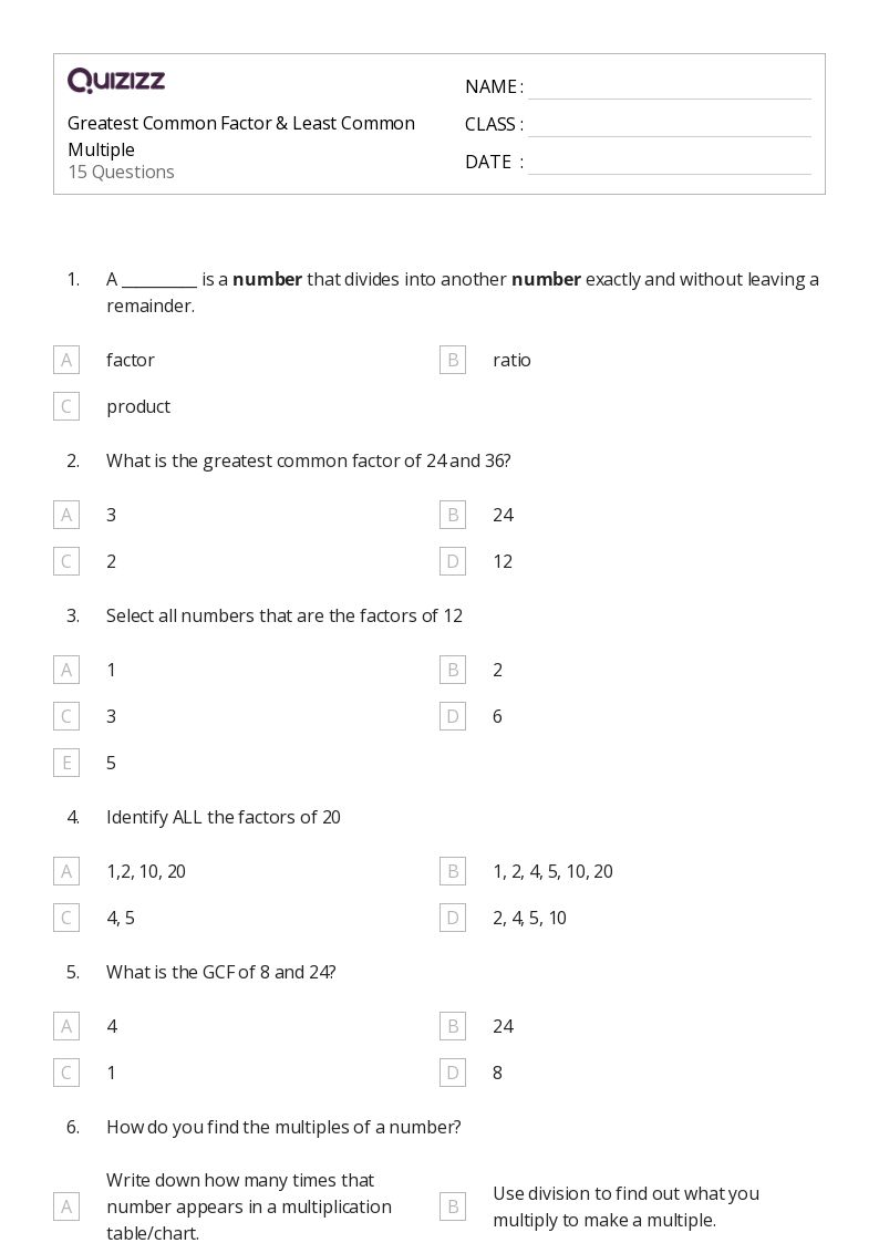 50+ Greatest Common Factor worksheets for 5th Grade on Quizizz Free