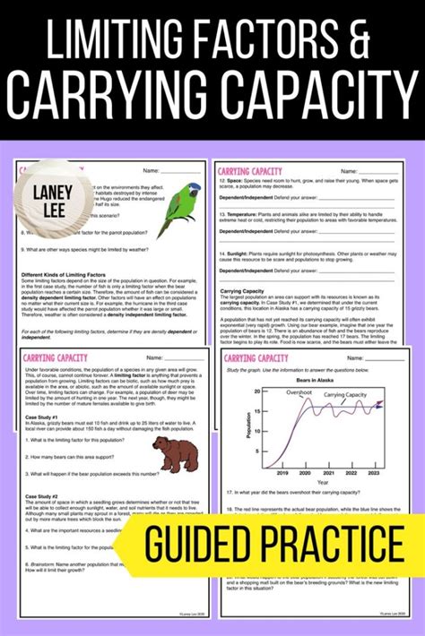 This worksheet can be used for in class practice, homework, sub plans, or a formative assessment. Which of the two curves exhibits exponential growth? Limiting factors determine carrying capacity. But eventually some environmental factor will cause the population to stop growing.