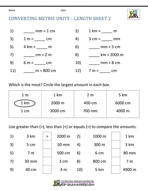 Printable Math Sheets Converting Metric Units