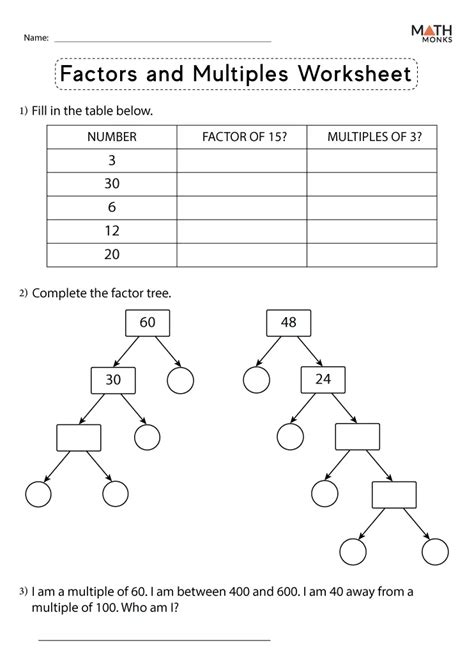 Maths Worksheets For Grade 5 Factors And Multiples Free Printable
