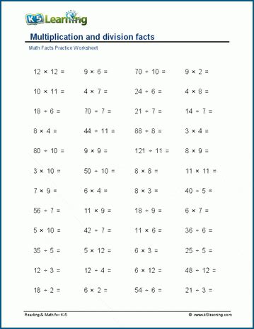 Multiplication And Division Facts Worksheets