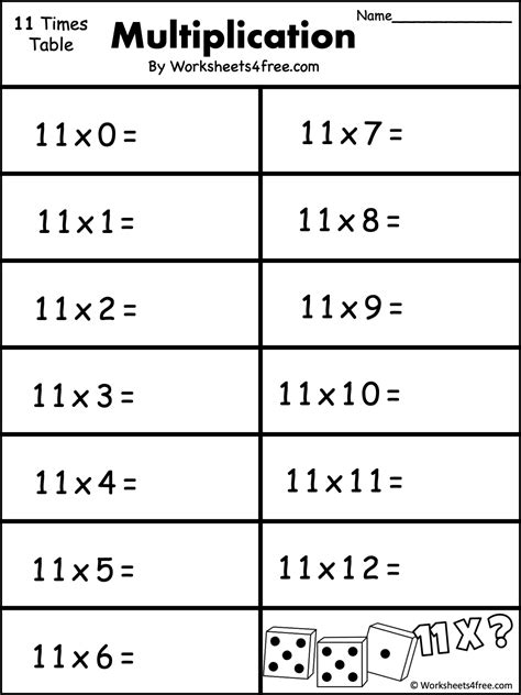 Multiplication by 11 worksheets provide an organized approach to learning this vital arithmetic operation. Students multiply 11 times numbers between 1 and 12. Multiplying large numbers with 11 requires memorizing eleven times table. Use the printable worksheets, tools, and games on this page to.