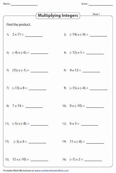 Multiplication Of Integers Worksheet