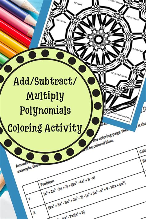 Browse multiplying polynomials coloring page resources on teachers pay teachers, a marketplace trusted by millions of teachers for original educational resources. This coloring activity provides students with 12 problems. Multiplying polynomials {coloring activity!} name: There are 12 problems where students practice adding, subtracting and.