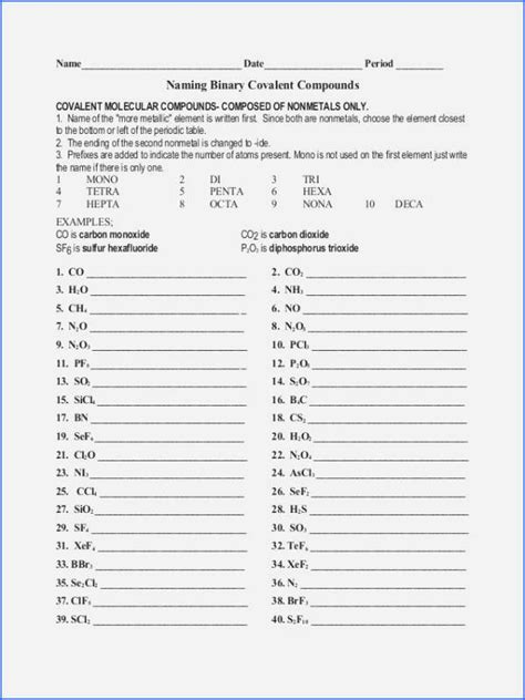 Naming Chemical Compounds Worksheet Name The Following Ionic Compounds: