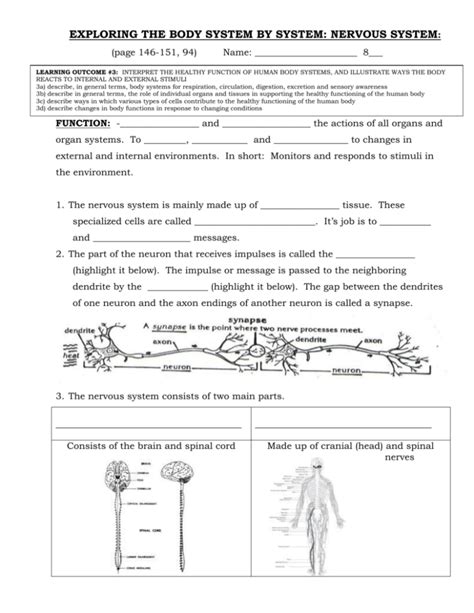 The nervous system activity sheet 1. Your is the boss of your body and controls everything you do. It contains textbook resources, such as chapter review guides, homework sets, tutorials, and printable images. Learn with flashcards, games, and more — for free.