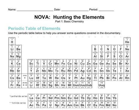 Nova Hunting The Elements Worksheet - 2) what is the symbol for gold? Answers to hunting elements name. Fill in the parts of this periodic table covered by the documentary. There are ________ unique substances (elements) arranged on an amazing chart that reveals their hidden secrets to anyone who knows how to read it. There are ________ unique substances (elements) arranged on an amazing chart that reveals their hidden secrets to anyone who knows how to read it. All games are run using 5th edition. Hunting the elements part basic chemistry period: