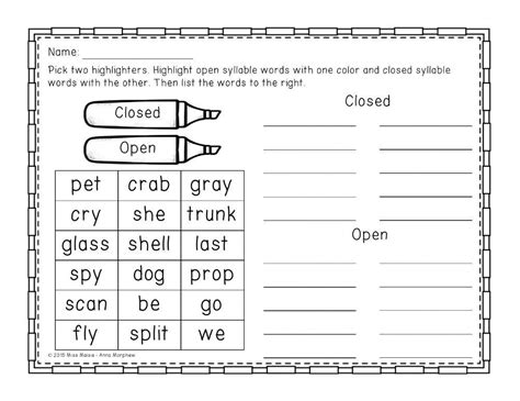 An open syllable has the vowel at the end of the syllable and makes the long vowel. Learn what is a closed syllable and grab our hand, free printable closed syllable list! Write the closed syllable words under the closed section. Easy worksheet for students to split words into syllables and determine if they are open or closed syllables. English language arts , phonics , spelling