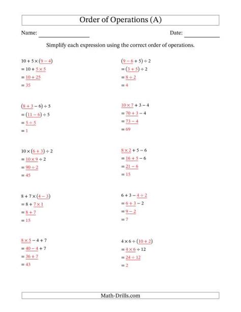 Practice adding, subtracting, multiplying, dividing and using exponents and parenthesis with varying numbers of. Free | math | worksheets | grade 5 | printable. Our grade 5 order of operations worksheets include the use of simple exponents, parenthesis and nested parenthesis with the 4 standard operations. The order in which these operations are performed affects the outcome. Using the correct order of operations, the.