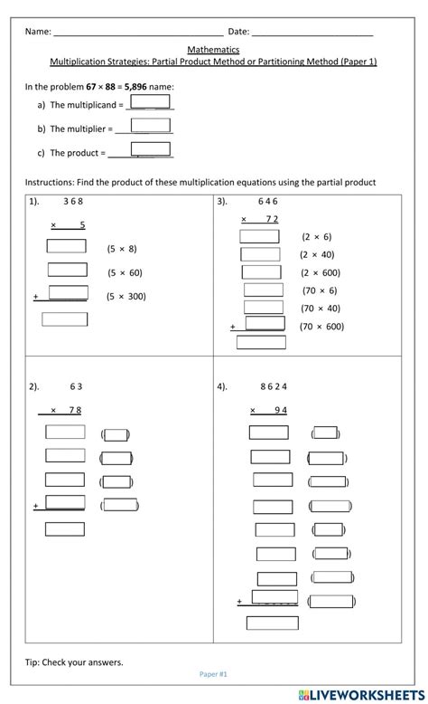 Scroll down the page for more examples and solutions on partial products. This worksheet has boxes to write out each individual set of factors, as well as their. The following diagram shows examples of partial. Designed for fourth and fifth graders, this math worksheet.