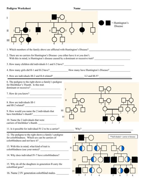 Shaded individuals have huntington’s disease. Because people affected by this disease are surviving at least to the age they are able to have children. In a pedigree, a square represents a male. Pedigree practice #2 worksheet problem #1: