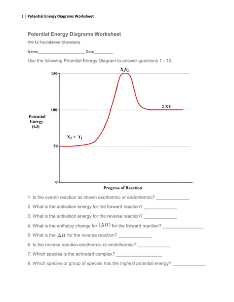 Potential Energy Diagram Worksheet