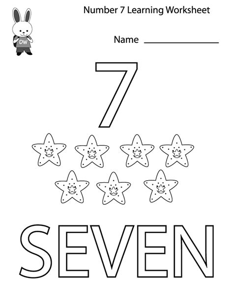 List of worksheets for learning number 7. Then, they write their own number. This free printable worksheet helps preschoolers learn the number seven by coloring in the number, the corresponding image, and the word seven. This worksheet gives students practice tracing and printing the number seven, counting to seven and recognizing 7 in a group of numbers.