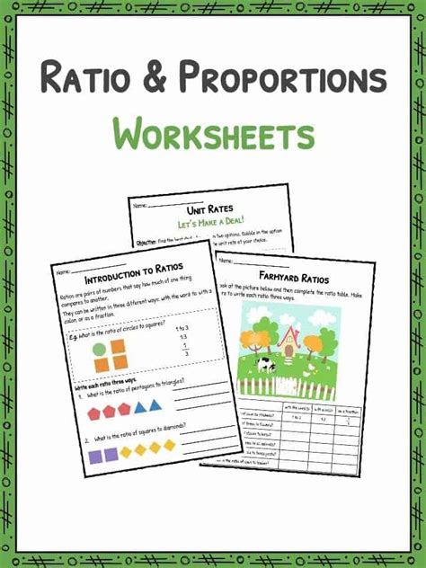 What is the ratio of girls to the total number of students surveyed? Our ratio and proportion worksheets have all been designed to use pictures and practical contexts to support understanding. These ratio worksheets are appropriate for 3rd grade, 4th grade, 5th grade, 6th grade, and 7th grade. Each problem sheet comes complete with an answer sheet.