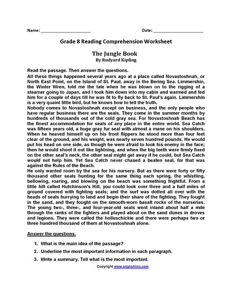 Starting with basic texts and gradually advancing to more complex materials, students will develop the ability to extract meaning from a wide. You may use our eighth grade reading comprehension worksheets to improve your undsertanding of reading. Our eighth grade reading comprehension worksheets are free to download and easy to access in pdf format. Free eighth grade, printable reading comprehension passages and questions for use in school or at home.