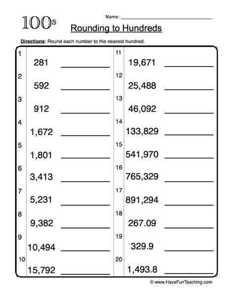 Lesson plans & activitiesloved by kidsfree full access trial Rounding numbers in the hundred thousands to the nearest ten thousand; 689 rounded to the nearest 100 is 700 round to the nearest hundred. Our rounding worksheets provide practice in rounding numbers to different place values (nearest ten, nearest 100.).