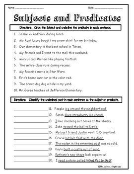 This Free Worksheet Has 20 Example Sentences With One Simple Subject And One Simple Predicate.