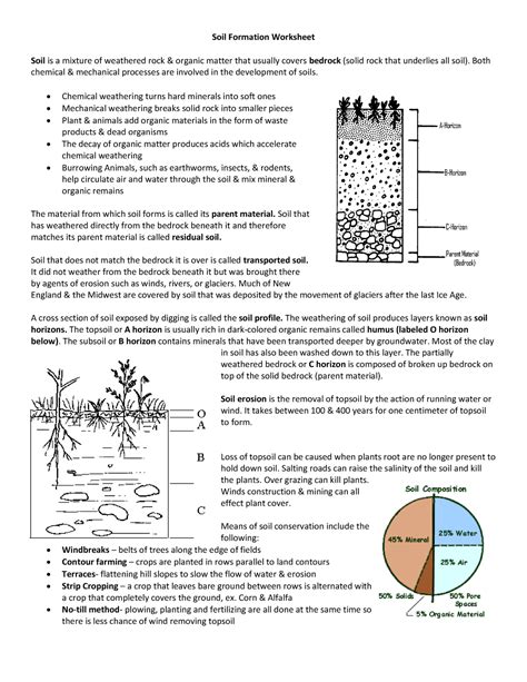 A worksheet for students to complete activities and answer questions about soil texture, color, horizons, and formation. Soil formation worksheet soil is a mixture of weathered rock & organic matter that usually covers bedrock (solid rock that underlies all soil). The document discusses soil formation and conservation. How is soil created from rock? 7th grade science worksheets and answer key, study guides. Much of new england and midwest is covered by soil from the last ice age.