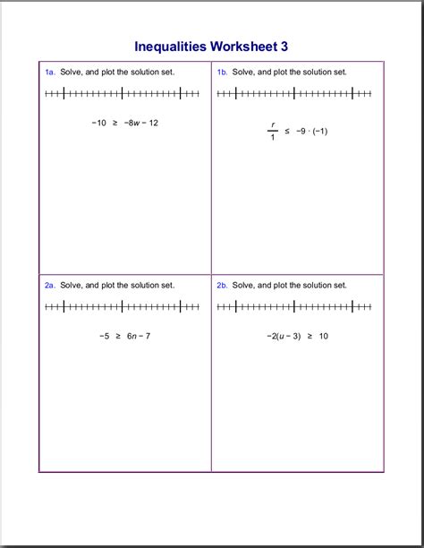 Find worksheets with answers on representing and solving linear inequalities, with different levels of difficulty and formats. You can also create your own worksheets with infinite algebra 2 software. Choose the format, range, difficulty and number of problems for your. The corbettmaths practice questions on inequalities.