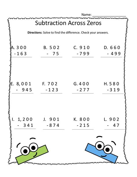 Subtract Across Zeros — Printable Math Worksheet Worksheets Library