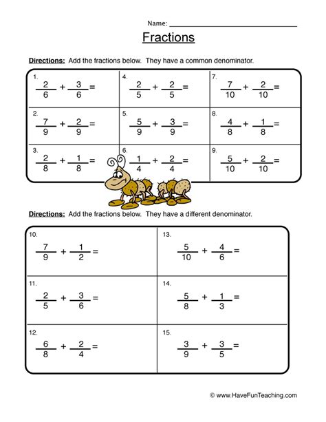 Adding And Subtracting Fractions With Unlike Denominators Worksheets