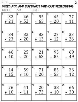 2 Digit Addition And Subtraction Without Regrouping Worksheets