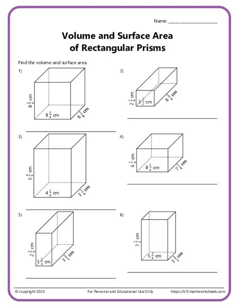 Surface Area Of A Rectangular Prism Worksheet