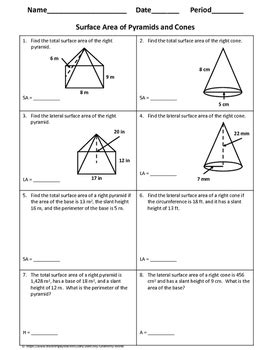 Partnered with nstasupports ngssused in 30k+ schoolseducational & fun Fi nd the surface area of pyramids. Complete the table for the surface area of each closed cone whose dimensions are shown. Get your free surface area of a pyramid worksheet of 20+ volume and surface area of pyramids questions and answers.