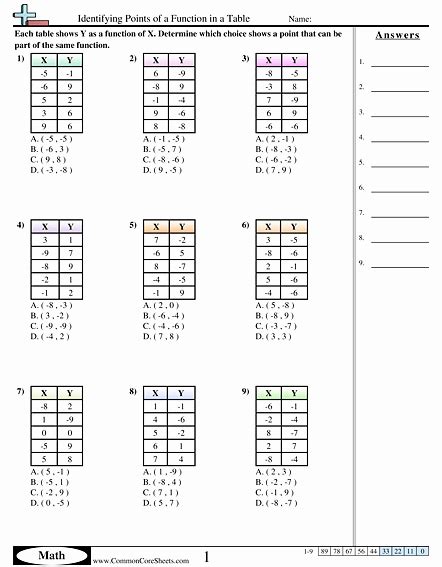 You can choose from up to four types of equations depending on the sophistication of your students. This function table worksheet will dynamically create in and out boxes for multiplication and division rules in horizontal and vertical formats. The worksheets on this page include seven sets of practice problems involving function tables. Complete each function table and then graph the function. This page shows you how to answer a range of different questions involving function tables.