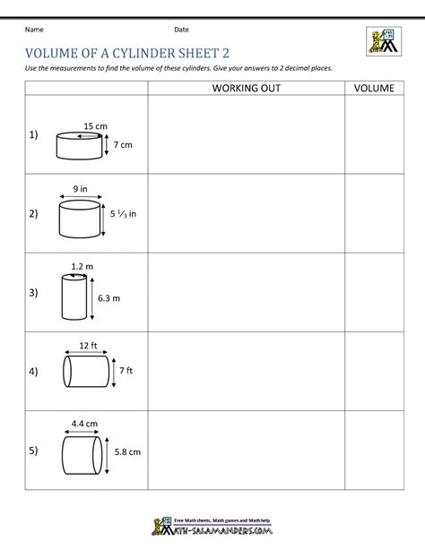 Free Volume Worksheets To Help You Practice Finding The Volume Of A Cylinder Given A Radius Or Diameter, Using 3.14 Or In Terms Of Pi.