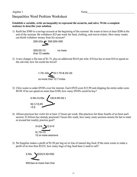 Use the inequalities >, <, ≥, ≤, ≠ to help solve these problems. 5) sandy makes $2 profit on every cup of lemonade that she sells. 1 understand the problem the answer will be the least number of packages of border needed to wallpaper a room. Learn about writing inequalities from word problems and practice this skill with one of our worksheets or use our online quiz. How to solve word problems involving inequalities.