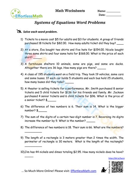 If she bought a total of 7 then how many of. Systems of equations word problems date_____ period____ 1) the school that lisa goes to is selling tickets to the annual talent show. Solve each word problem by writing and solving a system of equations. These exercises present challenging scenarios that promote critical thinking.