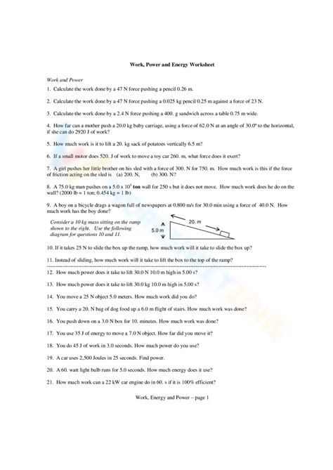 They can control the angle of the ramp,. Power = work / time (in watts) is done. Write out the equation for weight and substitute it into the work equation. What is the difference between kinetic and potential energy? Up to 24% cash back (a) how much work is done in 25 s?