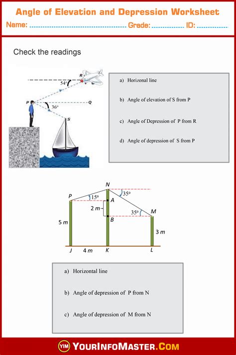 Worksheet Angle Of Elevation And Depression