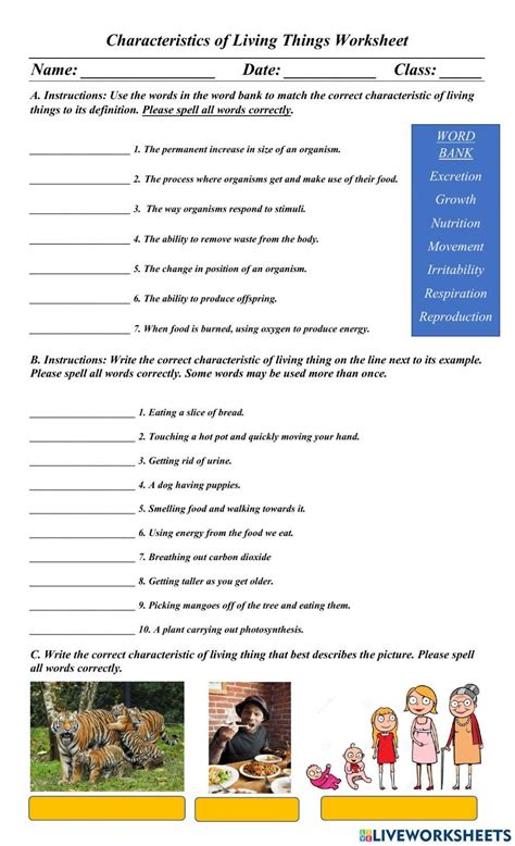 Up to 24% cash back characteristics of living things worksheet directions: In this worksheet, students will answer questions. Living things live in a constant connection with the environment, which includes the air, water, weather, temperature, any organisms in the area, and many other factors. How do you know when something is alive or not alive? Students read descriptions of animals and match to one of the characteristics of life: