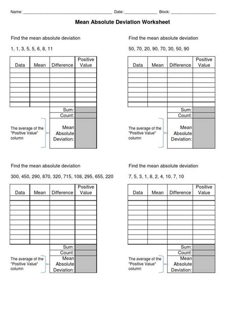 Worksheet On Mean Absolute Deviation